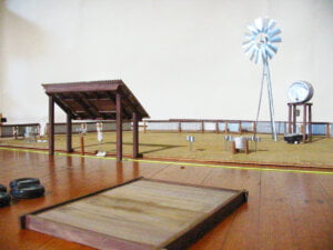 - The model was transported to Winton and displayed publicly in the town hall, garnering significant attention and feedback from the local community. Upon viewing the model, Chris Beetson (who later went on to build the post and wires elements of the fence) remarked, “You’re gonna need a fence around that fence.” He was concerned that the design might obstruct a traditional stock route.